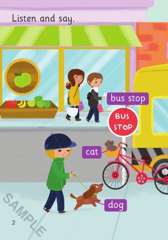 Listen and say. bus bus stop baby cat SAMPLE dog 2 Before reading 3 SAMPLE 3/4/21 11:24 AM Alice Stops 01-16_ChitF.indd 2-3 Alice Stops 01-16_ChitF.indd 2-3 3/4/21 11:24 AM