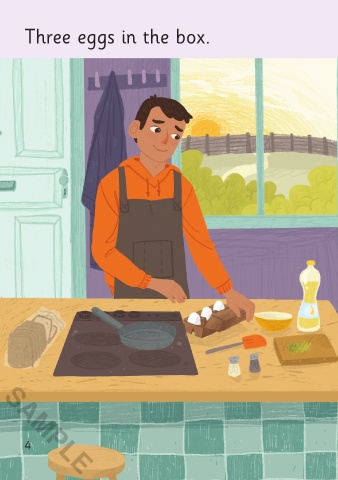 Three eggs in the box. Dan likes eggs. SAMPLE 4 5 SAMPLE 3/4/21 4:37 PM Dan Cook an Egg 01-16_Pah-FF.indd 4-5 3/4/21 4:37 PM Dan Cook an Egg 01-16_Pah-FF.indd 4-5