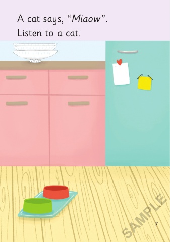 This is a cat. A cat says, “Miaow ”. Listen to a cat. Miaow! SAMPLE 6 7 3/4/21 4:38 PM I Say Hello 01-16_ChitF.indd 6-7 3/4/21 4:38 PM I Say Hello 01-16_ChitF.indd 6-7