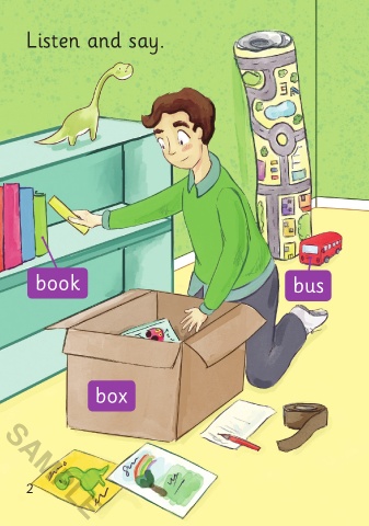 Listen and say. bed book bus baby bag box ball SAMPLE 2 Before reading 3 SAMPLE 3/4/21 4:39 PM In a box 01-16_ChitF.indd 2-3 3/4/21 4:39 PM In a box 01-16_ChitF.indd 2-3