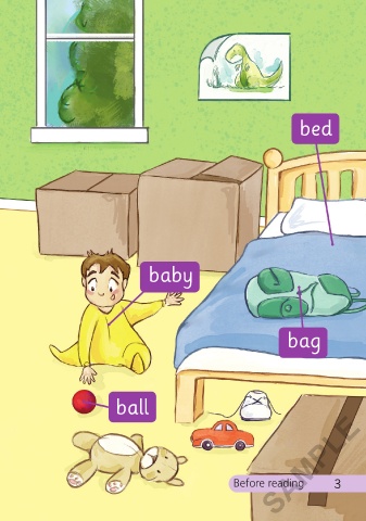 Listen and say. bed book bus baby bag box ball SAMPLE 2 Before reading 3 3/4/21 4:39 PM In a box 01-16_ChitF.indd 2-3 3/4/21 4:39 PM In a box 01-16_ChitF.indd 2-3
