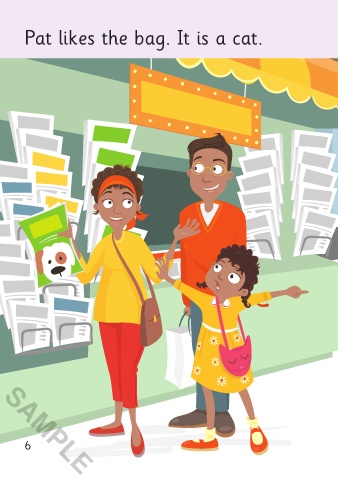 Pat likes the bag. It is a cat. Pat sees a cat. SAMPLE 6 7 SAMPLE 3/4/21 4:43 PM Pat Loves Cats 01-16_ChitF.indd 6-7 3/4/21 4:43 PM Pat Loves Cats 01-16_ChitF.indd 6-7