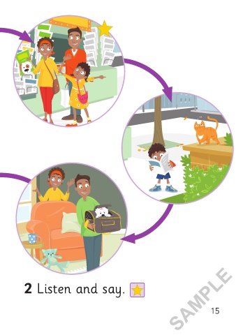 1 Look and tell the story. SAMPLE 2 Listen and say. 14 After reading 15 3/4/21 4:43 PM Pat Loves Cats 01-16_ChitF.indd 14-15 3/4/21 4:43 PM Pat Loves Cats 01-16_ChitF.indd 14-15
