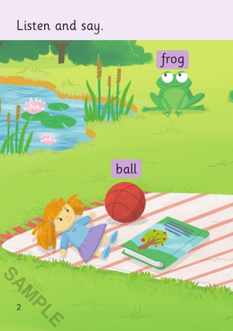 Listen and say. bee frog dog ball rug SAMPLE 2 Before reading 3 SAMPLE 3/4/21 4:44 PM Play I Spy 01-16_ChitF.indd 2-3 Play I Spy 01-16_ChitF.indd 2-3 3/4/21 4:44 PM