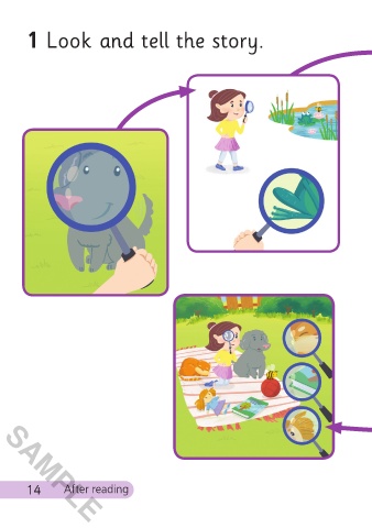 1 Look and tell the story. SAMPLE 2 Listen and say. 14 After reading 15 SAMPLE 3/4/21 4:44 PM Play I Spy 01-16_ChitF.indd 14-15 3/4/21 4:44 PM Play I Spy 01-16_ChitF.indd 14-15