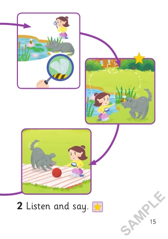 1 Look and tell the story. SAMPLE 2 Listen and say. 14 After reading 15 3/4/21 4:44 PM Play I Spy 01-16_ChitF.indd 14-15 3/4/21 4:44 PM Play I Spy 01-16_ChitF.indd 14-15
