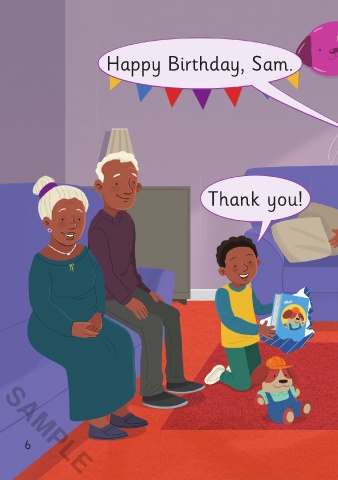 Happy Birthday, Sam. Thank you! Look! A book! I like books. SAMPLE 6 7 SAMPLE 3/4/21 4:45 PM Thank You 01-16_ChitF.indd 6-7 Thank You 01-16_ChitF.indd 6-7 3/4/21 4:45 PM