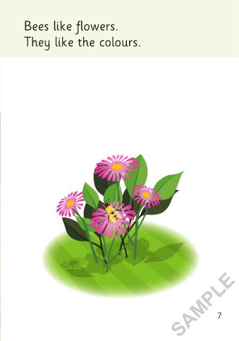 Let’s look … Bees like flowers. They like the colours. The bees are in the flowers. SAMPLE 6 7 3/5/21 11:55 AM Do Bees Dance 01-24_ChitF.indd 6-7 Do Bees Dance 01-24_ChitF.indd 6-7 3/5/21 11:55 AM