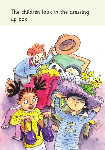 Sue and Jack play with Lily. The children look in the dressing up box. SAMPLE 4 5 3/5/21 12:01 PM Dressing Up 01-24_ChitF.indd 4-5 3/5/21 12:01 PM Dressing Up 01-24_ChitF.indd 4-5