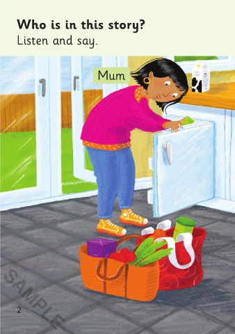 Who is in this story? Listen and say. Dad Mum Maz SAMPLE Pogo 2 Before reading 3 SAMPLE 3/5/21 12:12 PM Go Go Pogo 01-24_ChitF.indd 2-3 Go Go Pogo 01-24_ChitF.indd 2-3 3/5/21 12:12 PM