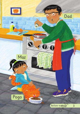 Who is in this story? Listen and say. Dad Mum Maz SAMPLE Pogo 2 Before reading 3 3/5/21 12:12 PM Go Go Pogo 01-24_ChitF.indd 2-3 3/5/21 12:12 PM Go Go Pogo 01-24_ChitF.indd 2-3