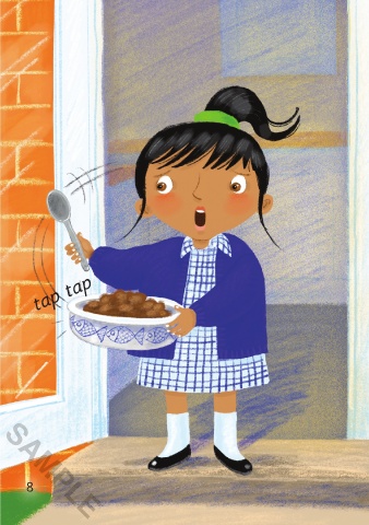Pogo likes her food. Eat your food, Pogo! tap tap SAMPLE 8 9 SAMPLE 3/5/21 12:12 PM Go Go Pogo 01-24_ChitF.indd 8-9 Go Go Pogo 01-24_ChitF.indd 8-9 3/5/21 12:12 PM