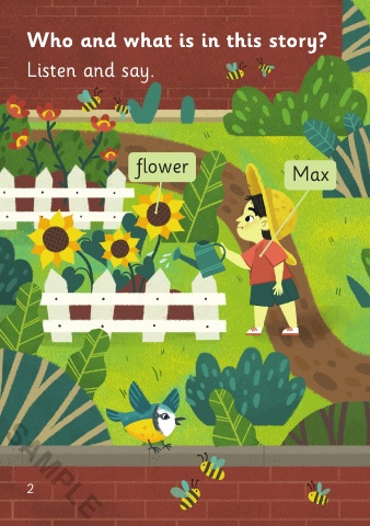 apple tree Who and what is in this story? Listen and say. garden flower Max SAMPLE 2 Before reading 3 SAMPLE 3/5/21 12:16 PM Happy Max 01-24_ChitF.indd 2-3 Happy Max 01-24_ChitF.indd 2-3 3/5/21 12:16 PM