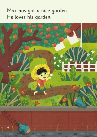 Max has got a nice garden. He loves the big apple tree. He loves his garden. SAMPLE 4 5 SAMPLE 3/5/21 12:16 PM Happy Max 01-24_ChitF.indd 4-5 Happy Max 01-24_ChitF.indd 4-5 3/5/21 12:16 PM