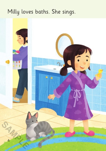 Milly loves baths. She sings. Milly likes lots of toys in her bath. SAMPLE 4 5 SAMPLE 3/5/21 12:24 PM I Like Bubbles 01-24_ChitF.indd 4-5 3/5/21 12:24 PM I Like Bubbles 01-24_ChitF.indd 4-5