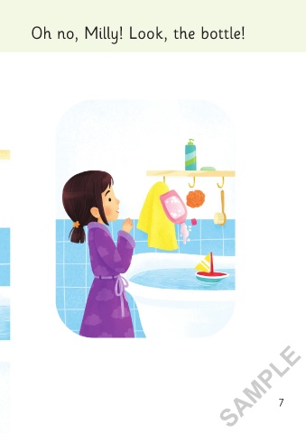 Milly sees a bottle. Oh no, Milly! Look, the bottle! I like bubbles! SAMPLE 6 7 3/5/21 12:24 PM I Like Bubbles 01-24_ChitF.indd 6-7 3/5/21 12:24 PM I Like Bubbles 01-24_ChitF.indd 6-7