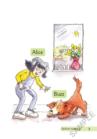 Who is in this story? Listen and say. Mum Alice Buzz SAMPLE 2 Before reading 3 3/5/21 12:39 PM Im Sorry 01-24_ChitF.indd 2-3 3/5/21 12:39 PM Im Sorry 01-24_ChitF.indd 2-3