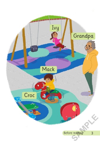 Who is in this story? Listen and say. Ivy Teacher Grandpa Mack Croc SAMPLE 2 Before reading 3 3/5/21 12:43 PM Its My School 01-24_ChitF.indd 2-3 Its My School 01-24_ChitF.indd 2-3 3/5/21 12:43 PM