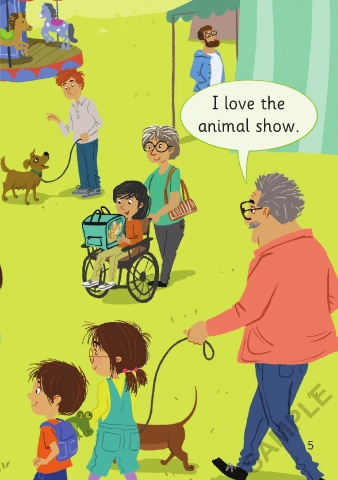 Grandpa, Mum, Ivy, Mack and Banjo the dog are at the park. I love the animal show. SAMPLE 4 5 3/5/21 12:55 PM Not That Goat 01-24_ChitF.indd 4-5 3/5/21 12:55 PM Not That Goat 01-24_ChitF.indd 4-5