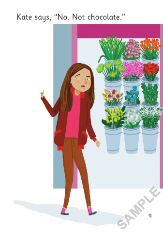 Then Eddie stops at a chocolate shop. Kate says, “No. Not chocolate.” Eddie says, “Mum loves chocolate.” SAMPLE 8 9 3/5/21 3:45 PM A Present for Mum 01-24_Chit1P.indd 8-9 A Present for Mum 01-24_Chit1P.indd 8-9 3/5/21 3:45 PM