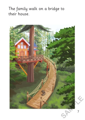 Look at this house! It’s in a tree. The family walk on a bridge to
