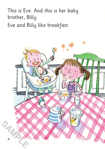 This is Eve. And this is her baby Mum says, “Oh, Billy! What are brother, Billy. you doing?” Eve and Billy like breakfast. SAMPLE 4 5 SAMPLE 3/5/21 4:11 PM Baby Billy 01-24_ChitF.indd 4-5 3/5/21 4:11 PM Baby Billy 01-24_ChitF.indd 4-5