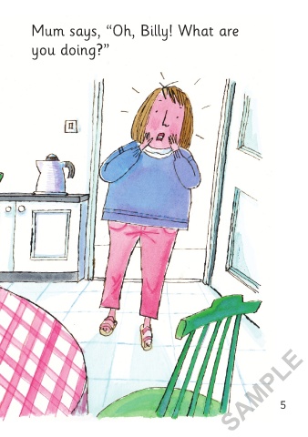 This is Eve. And this is her baby Mum says, “Oh, Billy! What are brother, Billy. you doing?” Eve and Billy like breakfast. SAMPLE 4 5 3/5/21 4:11 PM Baby Billy 01-24_ChitF.indd 4-5 3/5/21 4:11 PM Baby Billy 01-24_ChitF.indd 4-5