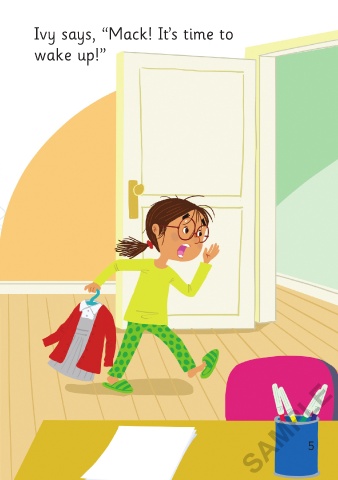 Ivy is sleeping. Ivy says, “Mack! It’s time to