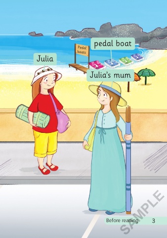 Who and what is in this story? Listen and say. pedal boat Pedal boats Julia beach Julia’s mum SAMPLE 2 Before reading 3 3/5/21 4:15 PM Bye-bye Turtle 01-24_ChitF.indd 2-3 Bye-bye Turtle 01-24_ChitF.indd 2-3 3/5/21 4:15 PM