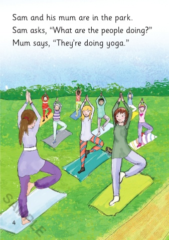 Sam and his mum are in the park. Sam asks, “What’s yoga? How do you