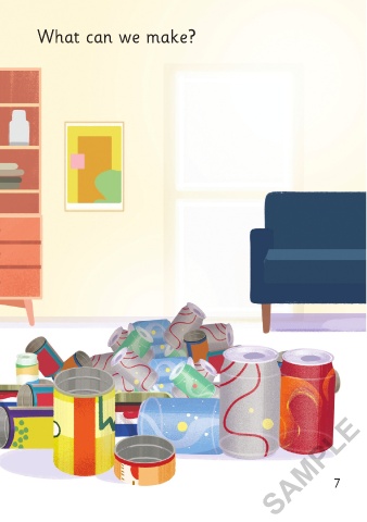 Look! Lots of food cans. What can we make? SAMPLE 6 7 3/5/21 4:18 PM Can We Use It Again 01-24_Chit1P.indd 6-7 Can We Use It Again 01-24_Chit1P.indd 6-7 3/5/21 4:18 PM