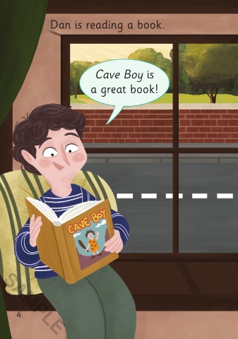 Dan is reading a book. Dad says, “Let’s go to the park.” Cave Boy is a great book! SAMPLE 4 5 SAMPLE 3/8/21 11:15 AM Cave Boy 01-24_ChitF.indd 4-5 3/8/21 11:15 AM Cave Boy 01-24_ChitF.indd 4-5