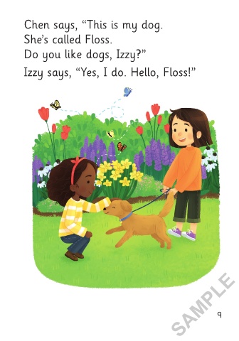 Chen and her dog visit Izzy’s garden. Chen says, “This is my dog.