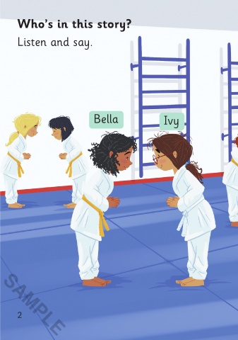 Who’s in this story? Listen and say. Ms Brett Mack Bella Ivy SAMPLE 2 Before reading 3 SAMPLE 3/8/21 1:00 PM Karate Club 01-24_SY2P.indd 2-3 Karate Club 01-24_SY2P.indd 2-3 3/8/21 1:00 PM