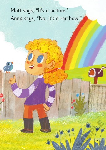 Fatma says, “Look there!” Matt says, “It’s a picture.” Anna says, “No, it’s a rainbow!” SAMPLE 4 5 3/8/21 1:01 PM Let's Catch a Rainbow 01-24_Chit1P.indd 4-5 3/8/21 1:01 PM Let's Catch a Rainbow 01-24_Chit1P.indd 4-5