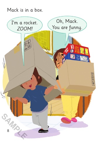Mack is in a box. Ivy gets some crayons, some glue,