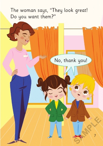 The woman says, “Hello, children. The woman says, “They look great!