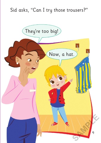 Sid asks, “Can I try this jacket?” Sid asks, “Can I try those trousers?”