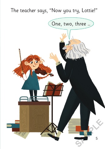 Lottie’s at her music lesson. The teacher says, “Now you try, Lottie!”