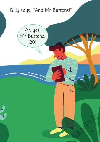 Mr Samson says, “…17, 18 … and Billy says, “And Mr Buttons!”