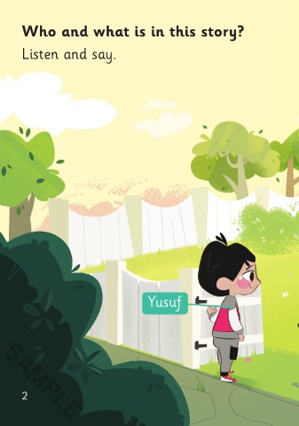 Who and what is in this story? Listen and say. treehouse tree Betty Jill Yusuf SAMPLE garden 2 Before reading 3 SAMPLE 3/9/21 8:21 AM My Treehouse 01-24_ChitF.indd 2-3 My Treehouse 01-24_ChitF.indd 2-3 3/9/21 8:21 AM