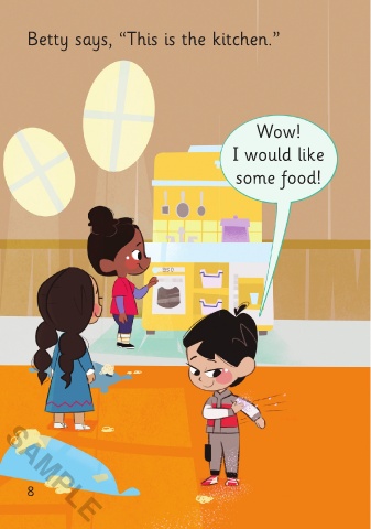 Betty says, “This is the kitchen.” Betty gets some fruit. Oh, look! Wow! I would like some food! SAMPLE 8 9 SAMPLE 3/9/21 8:21 AM My Treehouse 01-24_ChitF.indd 8-9 My Treehouse 01-24_ChitF.indd 8-9 3/9/21 8:21 AM