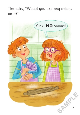 Tess asks, “Would you like any Tim asks, “Would you like any onions