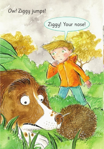 Ow! Ziggy jumps! Jad says, “Look, Mum! What is it?” Mum says, “It’s a hedgehog!” Ziggy! Your nose! SAMPLE 8 9 SAMPLE 3/9/21 8:47 AM Small Nose 01-24_ChitF.indd 8-9 Small Nose 01-24_ChitF.indd 8-9 3/9/21 8:47 AM
