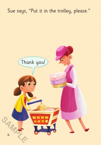 Sue says, “Put it in the trolley, please.”