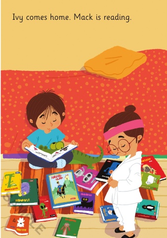 Ivy comes home. Mack is reading. Mack says, “Hello, Ivy.” Ivy says, “Why are you in my bedroom, Mack?” SAMPLE 4 5 SAMPLE 3/9/21 11:32 AM The Book Monster 01-24_Chit1P.indd 4-5 The Book Monster 01-24_Chit1P.indd 4-5 3/9/21 11:32 AM