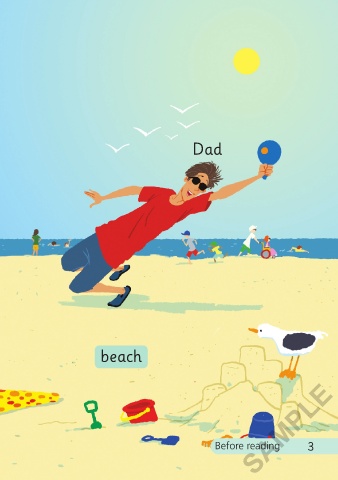 Who and what is in this story? Listen and say. Dad Mum Ivy Mack beach Croc SAMPLE 2 Before reading 3 3/9/21 11:39 AM Wait For Me 01-24_Chit2P.indd 2-3 Wait For Me 01-24_Chit2P.indd 2-3 3/9/21 11:39 AM