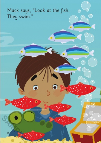 Mack says, “Look at the fish. They swim.” SAMPLE Lizards swim. 6 7 SAMPLE 3/9/21 11:48 AM What Do Lizards Do 01-24_SY2P.indd 6-7 What Do Lizards Do 01-24_SY2P.indd 6-7 3/9/21 11:48 AM