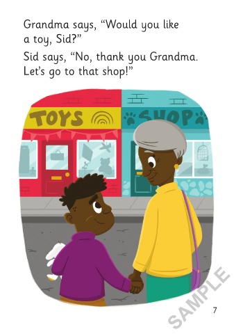 He says, “Can we go to the shops a toy, Sid?”
