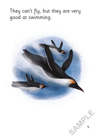 These birds are emperor penguins. They can’t fly, but they are very good at swimming. SAMPLE 8 9 3/9/21 11:55 AM Why Cant Ostriches Fly 01-24_Chit1P.indd 8-9 3/9/21 11:55 AM Why Cant Ostriches Fly 01-24_Chit1P.indd 8-9